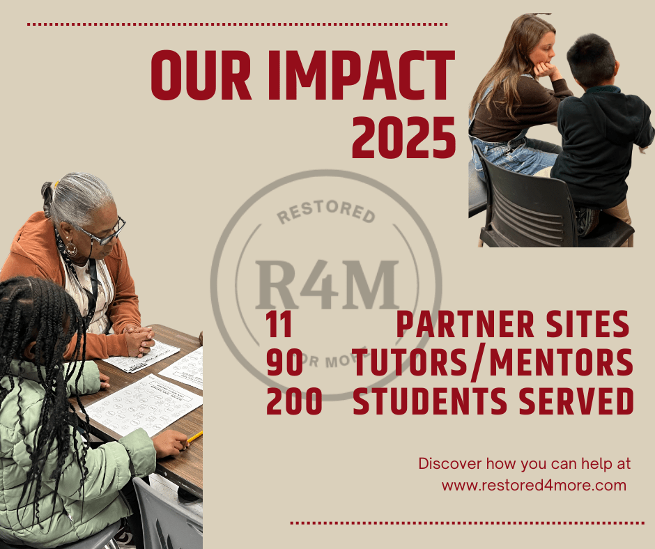 Restored For More is a 501(c)(3) non-profit corporation that exists to help youth from at-risk communities in the St. Louis metro area through tutoring and mentoring. We send tutors and mentors into schools and after school programs to empower youth with the skills they need to break cycles of poverty, crime, and addiction- skills that will support them on their path to success as they transition from youth to young adults.