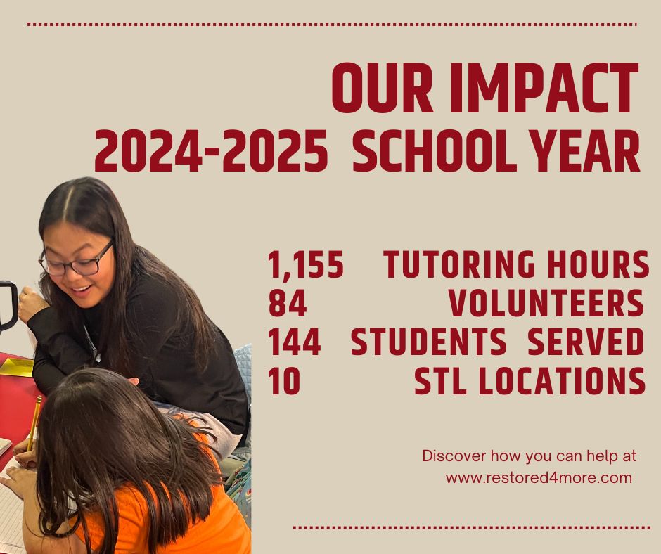 Restored For More is a 501(c)(3) non-profit corporation that exists to help youth from at-risk communities in the St. Louis metro area through tutoring and mentoring. We send tutors and mentors into schools and after school programs to empower youth with the skills they need to break cycles of poverty, crime, and addiction- skills that will support them on their path to success as they transition from youth to young adults.